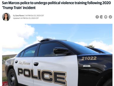 The city of San Marcos and three of its police officials, Chase Stapp, Brandon Winkenwerder, and Matthew Daenzner, SETTLED the Cervini v. Stapp case involving egregious allegations that they "failed to appropriately respond" to last minute calls from campaign staffers on the Biden Bus for a police escort when they drove through San Marcos on Interstate 35 while a Trump Train drove alongside them.